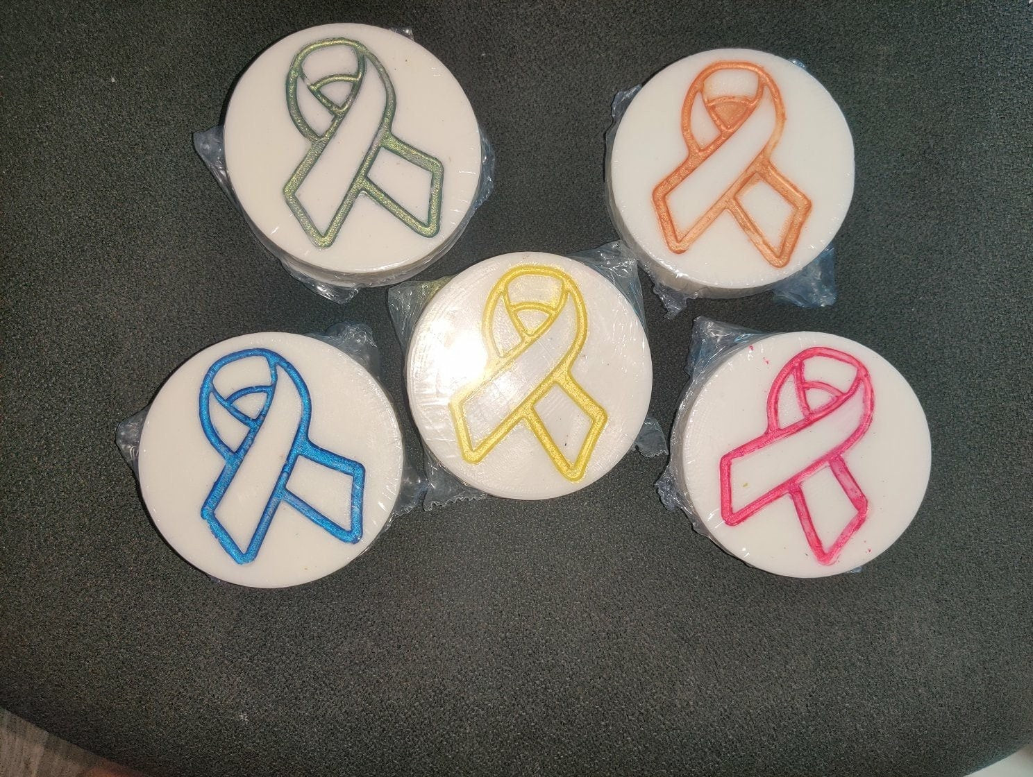 You will be receiving (1) Awareness Ribbon on a Disc mold cavity ( This listing is for the clear plastic mold ONLY. Finished piece is not included)